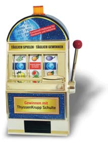 Unsere kleinste Slotmachine "Monaco" hat die ideale Größe für ein Präsent. Klein, handlich, leicht und doch auffällig und mit allen Funktionen wie seine "größeren Geschwister". Der Clou bei diesem Gerät ist, dass es neben seinen Spielfunktionen noch einen zusätzlichen Einwurf auf der Rückseite als klassische Spardose hat. Das Gerät funktioniert rein mechanisch und benötigt keinen Münzeinwurf. Falls doch Münzen eingeworfen werden, kommen diese als "Jackpot" bei einer Gewinnkombination heraus. Zusätzlich ertönt eine Klingel und das Blinklicht flackert (nur beim Einsatz von 2 Mignon Batterien). Eine ganz neue Art, spielerisch in Verbindung zu bleiben.